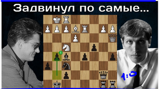Роберт Фишер крут и силен: троллит Роберта Штайнмайера своими белыми фигурами в Нью-Йорке, 1963. Защита Каро-Канн, классический в-т, 1-0