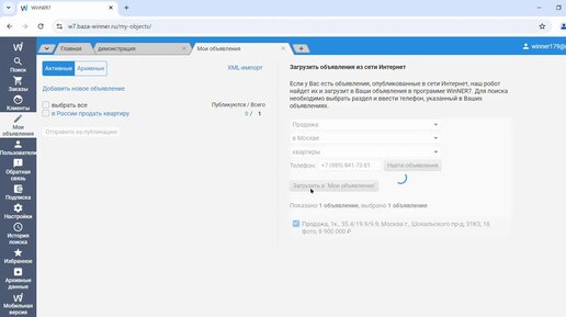 Как загрузить свои объявления из сети Интернет и разместить их в WinNER7