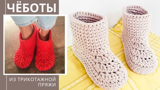 Чёботы из трикотажной пряжи. Домашние тапочки-сапожки крючком