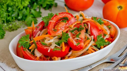 Прекрасная закуска на скорую руку. Пикантный салат из помидоров
