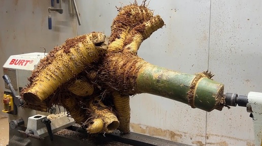 Подарочная Высокая ваза ручной работы из бамбукового корня.