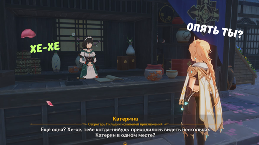 Старое знакомое лицо на новом месте как всегда уже ждет путешественника. "Катерина в Инадзуме"