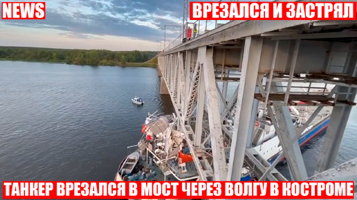 Танкер врезался в железнодорожный мост через волгу в Костроме