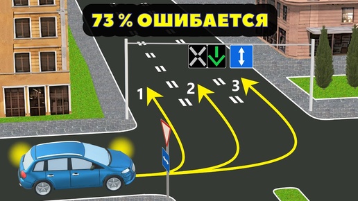 По какой из траекторий разрешено повернуть налево водителю синего автомобиля?