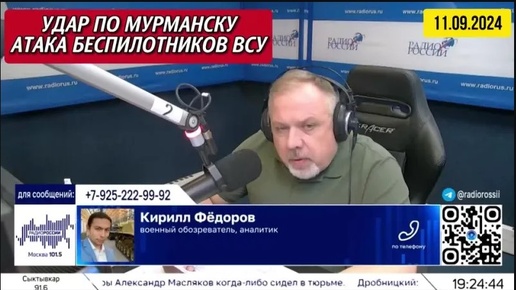 ⚡️ Кирилл Фёдоров на Радио России в программе "Наше время". Атака беспилотников ВСУ по Мурманской области.