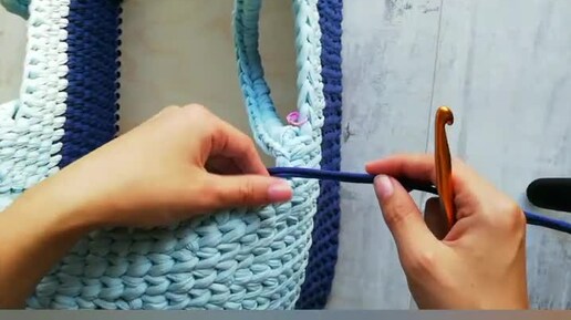 9. Люлька для младенца. Обвязываем капюшон крючком из трикотажной пряжи. Завершение. Этап 9