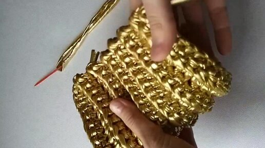 Простой и красивый Клатч крючком из пряжи золото Sweet.