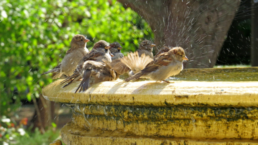 Как хорошо, что есть фонтаны! Мокрые воробушки