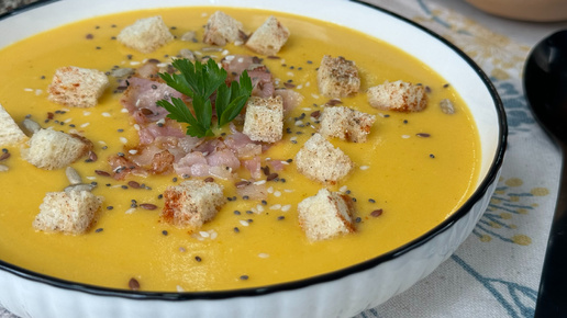 Вкуснее тыквенного супа в осеннем меню может быть только тыквенный суп с беконом