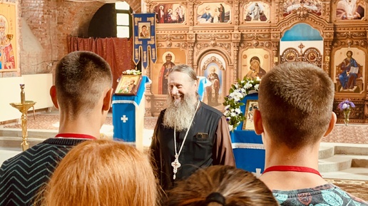 Сербскому коллективу «Шумадия» о строящемся храме Владимирской Божьей Матери рассказывает его настоятель отец Вячеслав