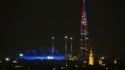 Башня "Лахта" окрасилась цветами петербуржского хоккейного клуба СКА, 12 сентября 2024