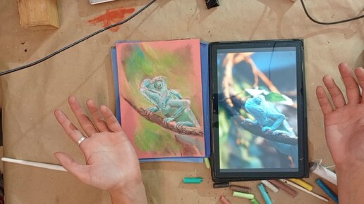 Рисуем хамелеона сухой пастелью. Урок 1 - создаем контур.