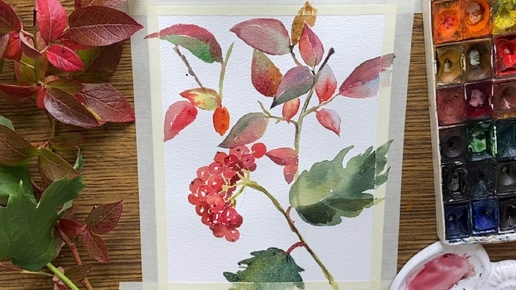Рисуем осенний букет акварелью. Осенние листья и калина