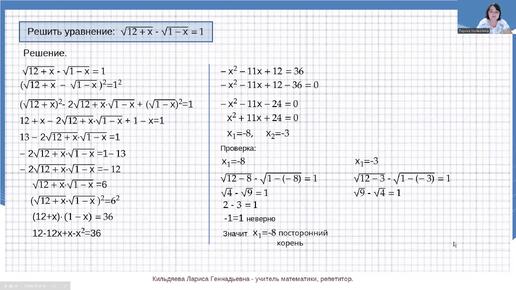 Решение иррационального уравнения. Алгебра 10-11 классы.