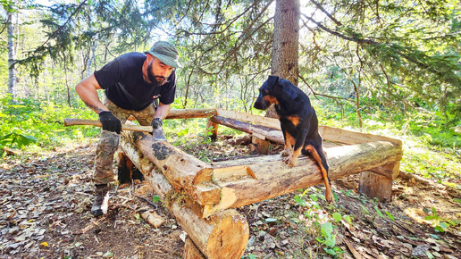 Строю БОЛЬШОЙ ДОМ В ЛЕСНОЙ ГЛУШИ - ПЕРВЫЙ ВЕНЕЦ | Улучшил ДОМ НА ДЕРЕВЕ в ДИКОМ ЛЕСУ