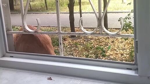 Персик спрыгнул с окна за птичкой. Кот и птичка не пострадали.💕🍑😻