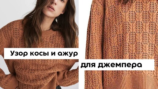 Косы спицами. Интересный узор из кос и ажура для джемпера