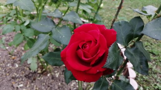 Розы и георгина в середине сентября. Обрезка растений, клумба после уборки и удаления однолетников.