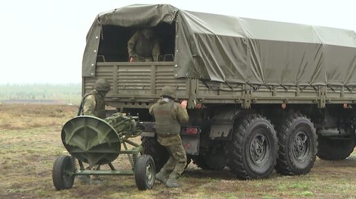 Военнослужащие по контракту ЛенВО осваивают технику стрельбы из 120-мм буксируемого миномёта 2С12 «Сани»
