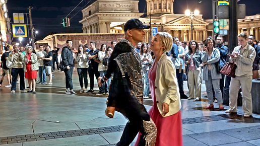 Танцор Майкл зажигательно танцует с девушками у канала Грибоедова