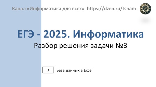 ЕГЭ - 2025. Информатика. Задача 3. База данных в электронных таблицах Excel. Задание: В файле приведён фрагмент базы данных.