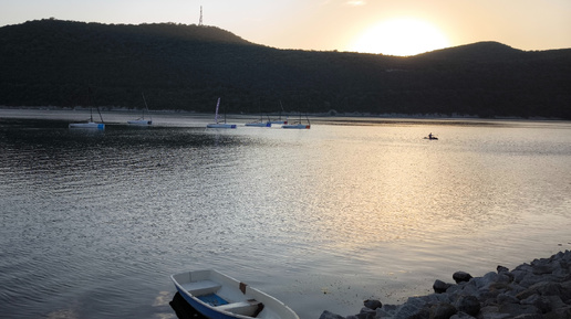 Абрау-Дюрсо на закате дня, живописное место среди гор