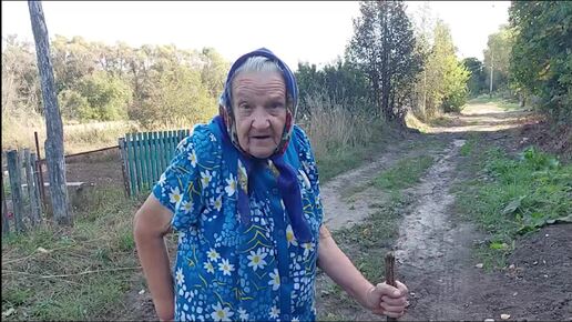 Мария Егоровна колет дрова на топку.