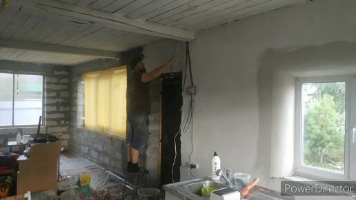 Красим потолок, штукатурим стены и завершаем работы по системе отопления