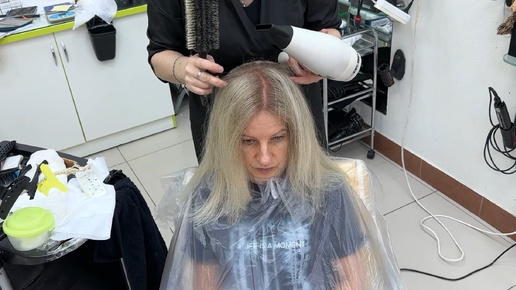 Окрашивание седых волос в платиновый блонд с плотным корнем, закрашивание седины в блонд. Блонд на седых вооосах без обесцвечивания