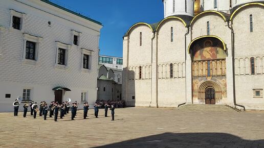 Оркестр перед разводом караула на Соборной площади Кремля.
