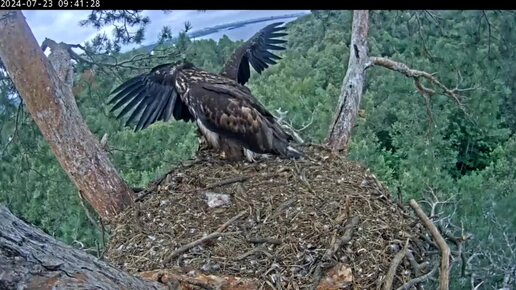 23.07.2024 Камычи. Танай вернулся и сел под гнездом. Тойма наблюдает