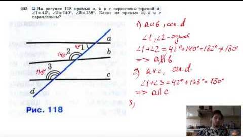 №202. На рисунке 116 прямые а, b и с пересечены прямой d, ∠1=42°, ∠2=140°, ∠3=138°. Какие из прямых