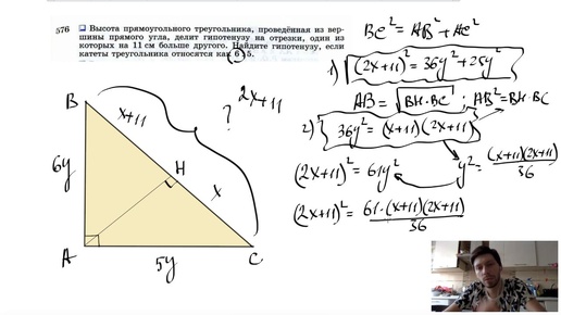 №576. Высота прямоугольного треугольника, проведенная из вершины прямого угла, делит