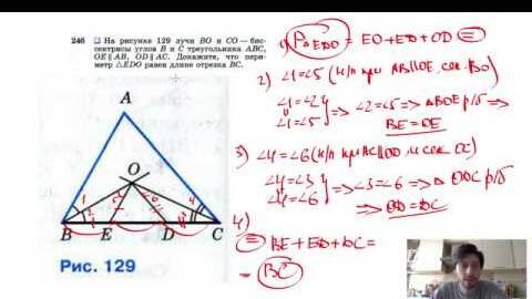 №246. На рисунке 129 лучи ВО и СО— биссектрисы углов B и С треугольника ABC, ОЕ||AB, OD||AC