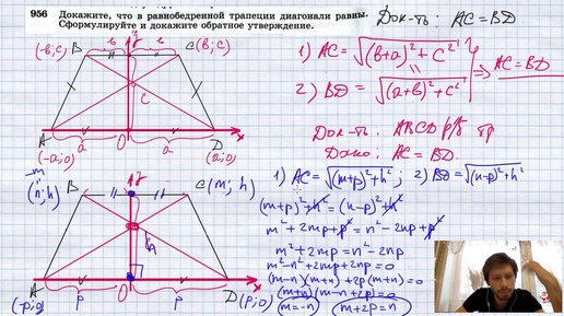№956. Докажите, что в равнобедренной трапеции диагонали равны. Сформулируйте и докажите обратное