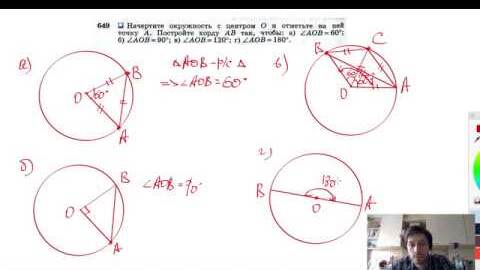 №649. Начертите окружность с центром О и отметьте на ней точку А. Постройте хорду АВ так, чтобы: