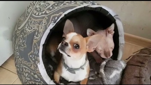 как кошка с собакой,видео приветик от нашей дочки Шкоды и ее друга голыша котика, Кастропуло Крым
