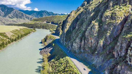 Река Катунь,смотровая площадка. Чуйский тракт между сёлами Купчегень и Малый Яломан, Онгудайский район горного Алтая. 2024 год