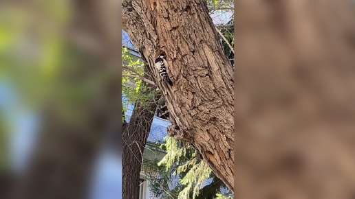 Вот такой работяжка у нас во дворе. Крону у дерева спилили. Он работает, старается