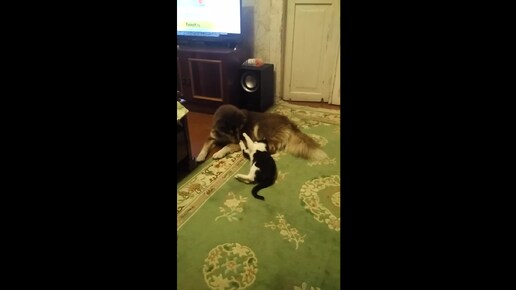 Трогательная дружба кота и собаки