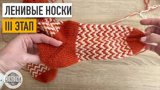 Ленивые носки от мыска спицами. III этап (пятка бумеранг)