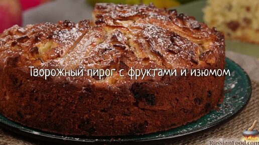 Пышный и сочный одновременно. Творожный пирог с фруктами и изюмом
