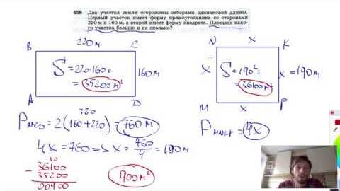 №458. Два участка земли огорожены заборами одинаковой длины. Первый участок имеет форму