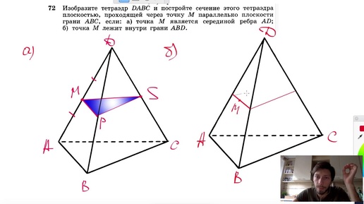 №72. Изобразите тетраэдр DABC и постройте сечение этого тетраэдра плоскостью, проходящей