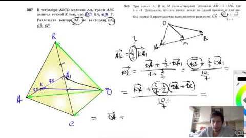 №367. В тетраэдре ABCD медиана АА1 грани ABC делится точкой К так, что АК:КА1 =3:7.