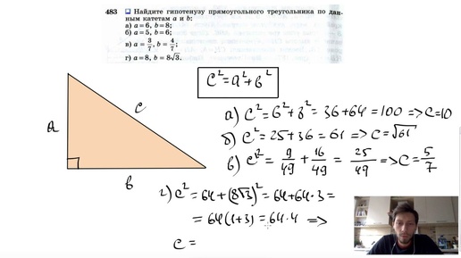 №483. Найдите гипотенузу прямоугольного треугольника по данным катетам a и b: