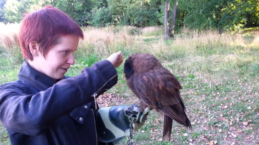 Хурон - серая неясыть-меланист. Игра в гляделки.