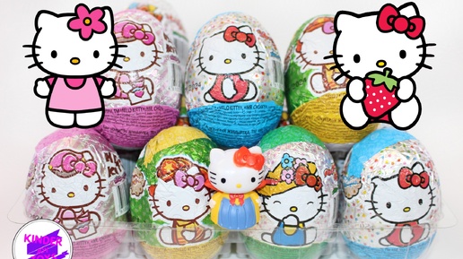 Hello Kitty. Фигурки Хеллоу Китти, и стикеры в сюрпризах от Юнион. Распаковка шоколадных яиц.