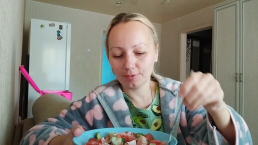 Мой простой и вкусный ужин ☺️ Овощной салатик и бутерброд с индейкой 😋 И томатный сок на десерт ☺️ Поедим и поболтаем! Пушистики рядышком🤗