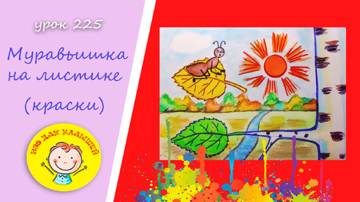 Как нарисовать МУРАВЬИШКУ. УРОК 225.Тема: "муравьишка на листике"- краски, цветные карандаши